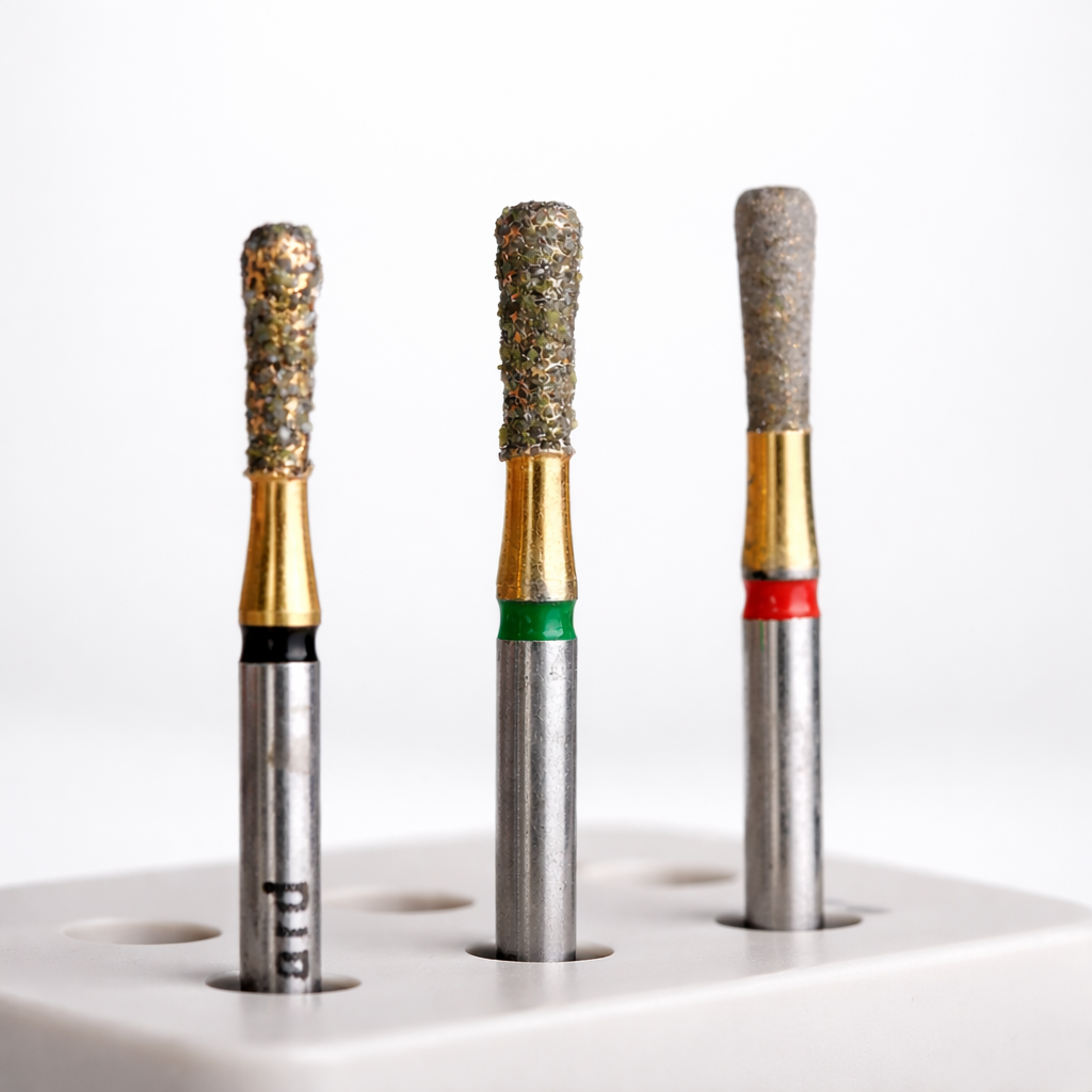 Die mehrlagigen Kornschichten werden von elektrolytisch aufgetragenem Reinnickel fixiert. Ein elektroerosiver Prozess sichert Kühldrainagen für den Substanzabtrag bei der Präparation. Beim Repetieren wird das abgenutzte Diamantkorn freigesetzt; an dessen Stelle tritt ein neues, scharfes Korn.